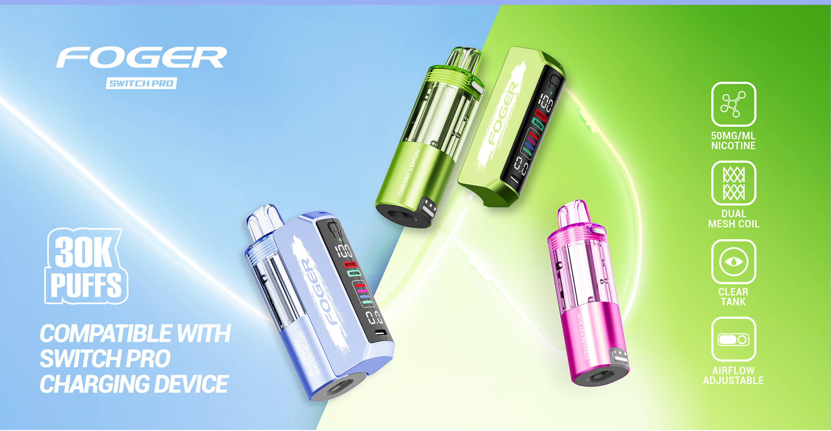 Foger Vape is a company that focuses on electronic cigarette equipment. Its goal is to provide consumers with practical and innovative electronic cigarette equipment. Foger has launched two products, Foger CT10000 and Foger Switch Pro. Among them, the Foger Switch Pro is a highly creative product that has been well-received in the market. Staying focused and passionate about product research and development is the internal driving force for the continuous development of the Foger Vape.